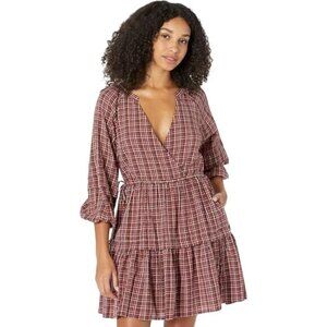 Madewell Maroon Plaid Tiered Dress