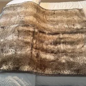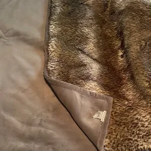 Pottery Barn Luxurious Faux Fur Throw - Rich Brown and Cream