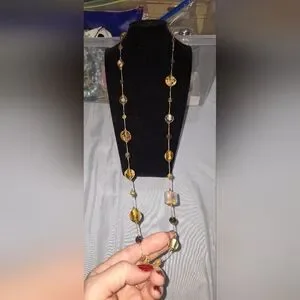 This elegant necklace features a stunning combination of gold and brown beads, perfect for adding a touch of sophistication to any outfit.