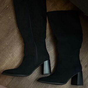 Sleek and stylish over the knee boots. Perfect for versatile wear.