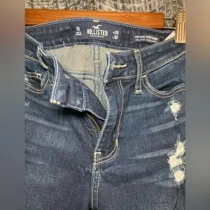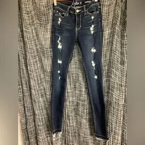 Stylish distressed blue jeans perfect for a casual look. Comfortable fit with a trendy design.