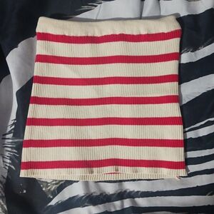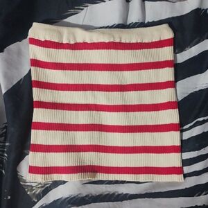 Women Red & Beige Striped Tube Crop Top