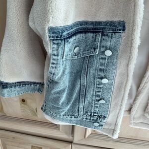 Cream, cotton and polyester soft winter jacket w blue jean accents SzS $45 NWT