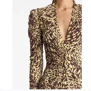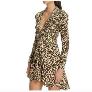 A.L.C. Marcie SILK Mini Dress NWT Golden Haze Chocolate Brown Leopard Brand New