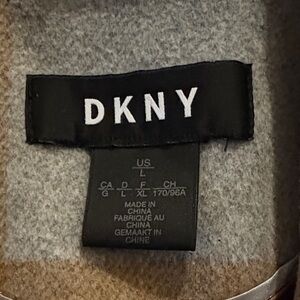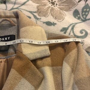 EUC - Stylish DKNY wool coat with a checkered pattern. Features a fully lined coat in impeccable condition with a blend of brown and gray tones. Ideal for fall and winter wear.
