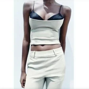 BLOGGER'S FAVE! Zara 2 Piece Flared Pants And Matching Tank Top Set Khaki