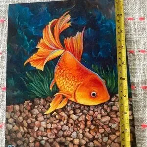 Brighten your space with this vibrant orange goldfish canvas art. Perfect for fish enthusiasts, this piece adds a splash of color to any room.
