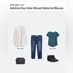 FORTUNE + IVY Adeline Key Hole Mixed Material Blouse blue women’s XL stitch fix