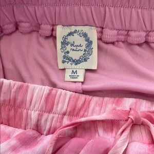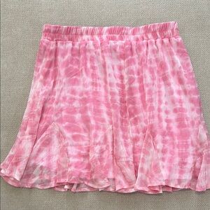 Embrace a breezy, casual vibe with this Blue Rain mini skirt, featuring a playful skater silhouette and a charming tie front. The pink and white color scheme, combined with a ruffled hem, adds a touch of whimsy to your resort wear collection. Crafted from lightweight fabric, it offers comfort and effortless movement for sunny adventures. This item is gently used