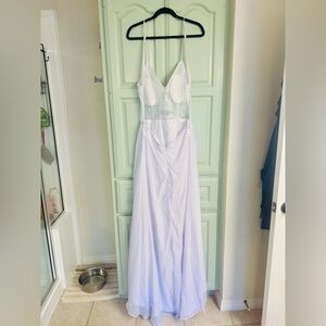 This elegant white lace dress is perfect for any special occasion. Featuring intricate lace detailing, it offers a sophisticated and timeless look. Ideal for weddings, parties, or formal events.