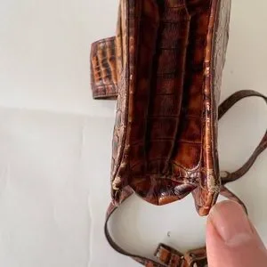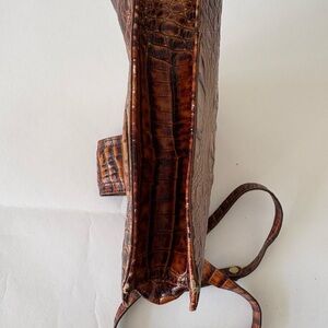 Elegant Brahmin brown leather crocodile embossed crossbody bag with adjustable strap