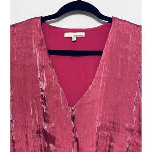 June and Hudson Top Womens Large Shimmery Smocked Waist Long Sleeves Pink Boho