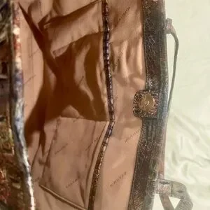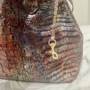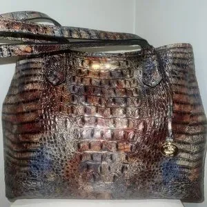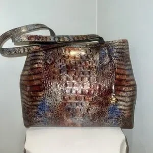 Elevate your style with this gorgeous Brahmin Medium Julian Tote in the rare Cedar Melbourne finish. Stunning croc-embossed leather in rich earthy tones with navy accents — truly eye-catching and versatile.