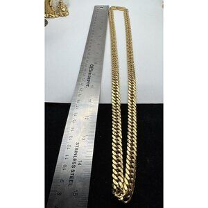 Vintage Gold Tone Flat Curb Chain Necklace Chunky Bold Statement Collar 30"