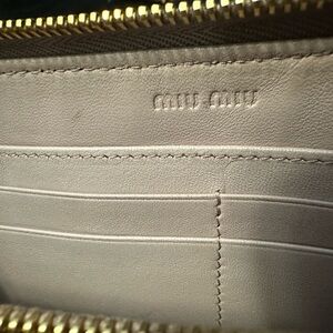 Elegant Miu Miu wallet with a quilted design. Features a zip closure and gold-tone hardware.