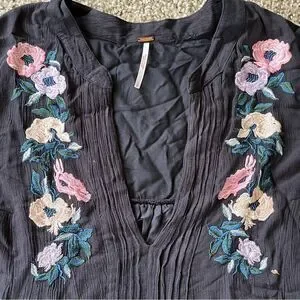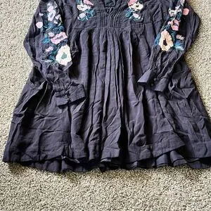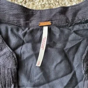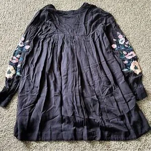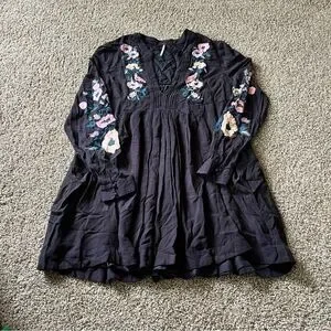 Woman’s Free People Black Smocked Mini Dress with Bishop Sleeves