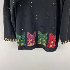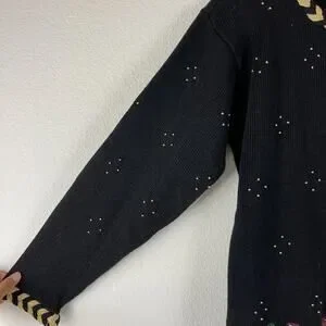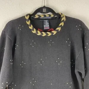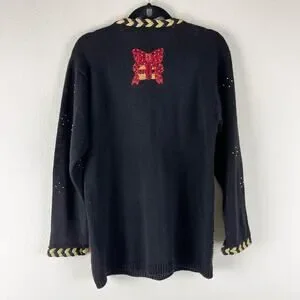 VTG Eagles Eye Sweater Womens Medium Ramie Embroidered Beaded Holiday Hong Kong