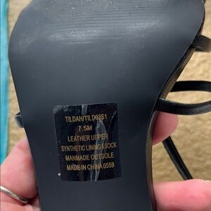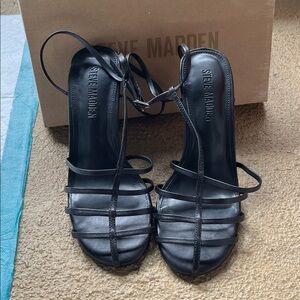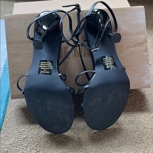 Stylish black heels with sleek straps. Ideal for versatile wear.