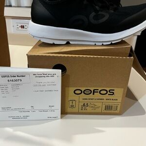 Stylish OOFOS sneakers. Black upper with white sole. Perfect for comfort and support.