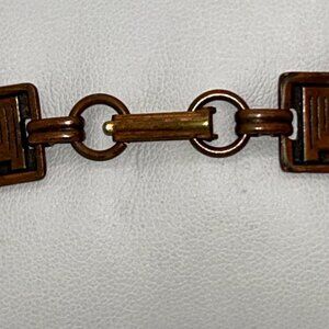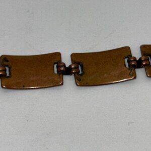 The replacement clasp is functional, but it is not made of copper. Bracelet panels display minor patina consistent with age. Length = 7 inches.
