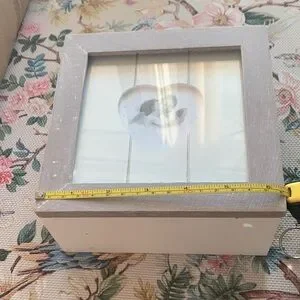 Add a touch of elegance to your home with this whote heart-shaped wooden photo frame keepsake box. Perfect for preserving and displaying cherished memories. Hand made. New never used, purchased in a small village in Northern Italy. Makes a lovely gift.