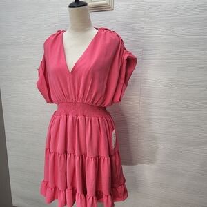 Mod On Trend NWT Smocked Waist Pink Dress Size Medium V-Neck