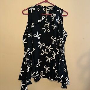 Chic and stylish, this black and white top features a playful bow print. Perfect for any occasion, it offers a comfortable fit with a trendy design.