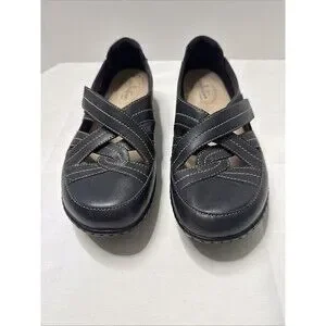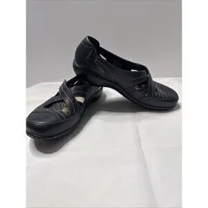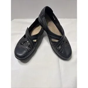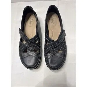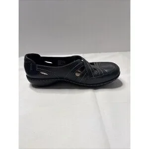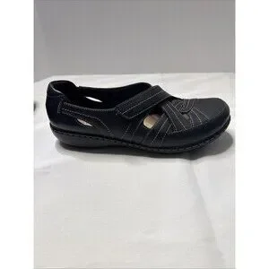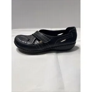 Clarks Women's Ashland Spin Q Flat Black Leather Sz 8.5 Medium Gently Used 2025