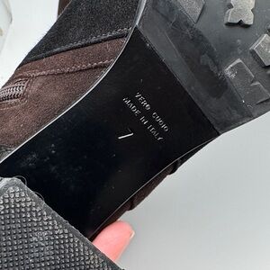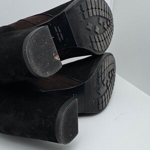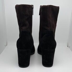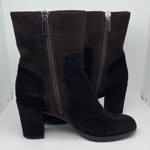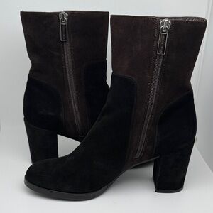Aquatalia Suede Brown Black Ankle Block Heel Zipper Closure Bootie Size 7