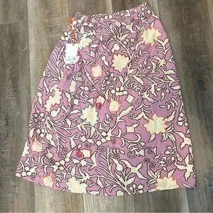 Step out in style with this chic floral midi skirt. Featuring a beautiful pink and cream pattern, it's perfect for any occasion.