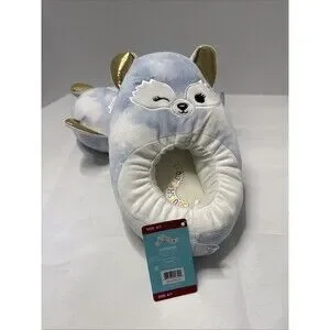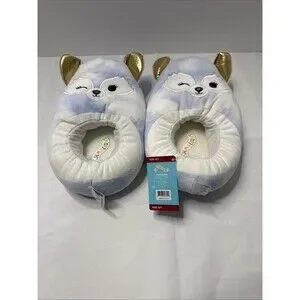 Squishmallows Melani Arctic Fox Plush Adult Sz 6/7 Blue White Gold Ear Slippers