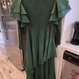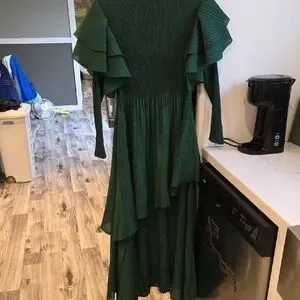 This elegant long sleeve dress features a rich green color, perfect for any occasion. The flowing design adds a touch of sophistication to your wardrobe.