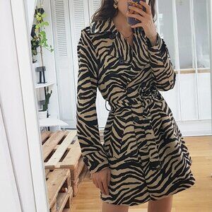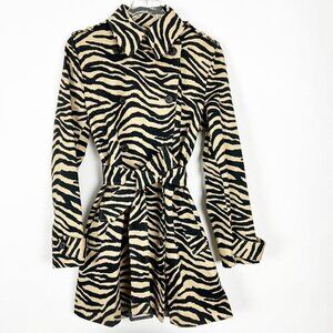 Lauren Ralph Lauren Trench Coat Womens L Tan Black Belted Zebra Tiger Print