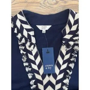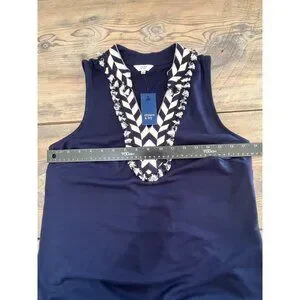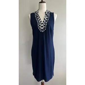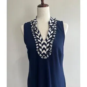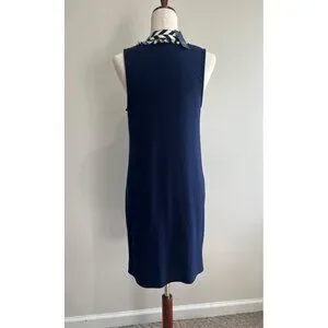 Crown and Ivy Sleeveless Shift Dress Womens S Navy V-Neck Stetch Coastal Core