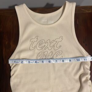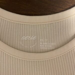 Excellent condition, Aerie Ribbed Crop Text Me Tank Top Size XS. 57% cotton, 38% polyester and 5% elastane – machine wash cold. See pictures for length and armpit armpit measurements. Color cream.