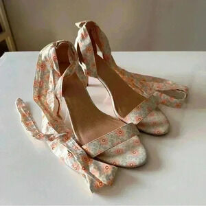 Anthropologie Floral Tie Up Heels Women’s size 8 Balletcore Boho Wedding Formal