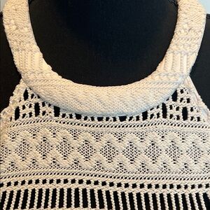 Chic crochet design. Lined to the mid-thigh. Built-in bra. Perfect for summer outings. Adds elegance to any wardrobe.