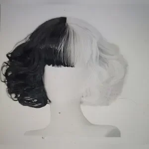 NWT BLACK WHITE CURLY STRAIGHT BOB COSPLAY HALLOWEEN