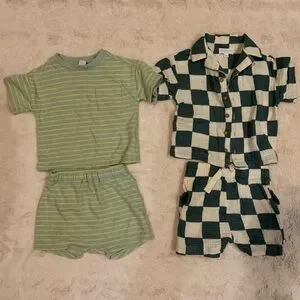Mini Grayson green and cream checkerboard print woven button front shirt and shorts