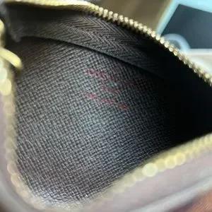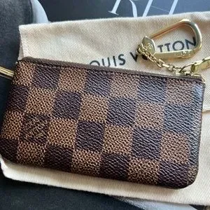 Comes with dust bag and box. Some surface dirt on interior. Light tarnishing on zipper pull and key ring. Zipper and key ring are fully operational.