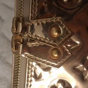 Elevate your style with this luxurious gold mirror LV Limited Edition designer bag. Perfect for any occasion, this bag combines elegance and functionality.