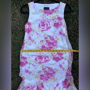 Vintage Scarlett sleeveless floral dress in a dreamy pink & white watercolor rose print 🌸. Fitted through the body with a flared hem that gives it a soft, flowy silhouette. Lightweight 100% polyester. Tag size 5/6 (fits like S/M). Perfect for spring parties, garden weddings, or that early 2000s prom vibe ✨.