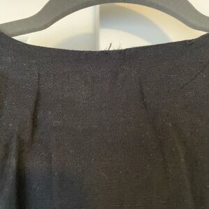 Chic black midi dress with button-front detail. Sleeveless design. Perfect for versatile styling. Cotton-linen blend. It has some wrinkling and lint from storage, and few loose threads. Open to offers!