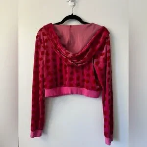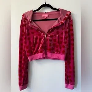 JENNIFER’S BODY Velour Pink Heart Cropped Zip Up Sweatshirt