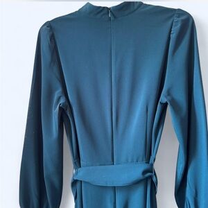 This elegant teal dress features long sleeves and a flattering silhouette, perfect for any occasion. The rich color adds a touch of sophistication to your wardrobe.