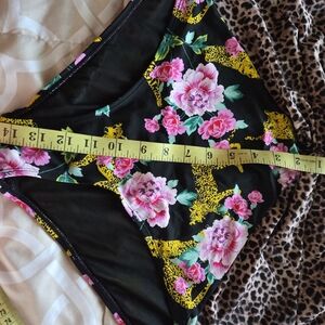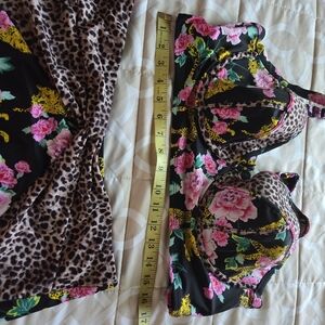 This stylish women's swim set features a vibrant floral and leopard print design. Perfect for adding a touch of elegance to your beach wear collection. Only used once, perfect condition. top size 2, bottom size 1 with lining, comfortable fit, good coverage and still sexy.