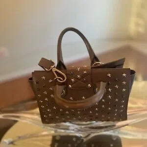 Luxurious Jimmy Choo Riley Star Styds Leather Handbag. It comes with the authenticity card. Very clean interior. This is in good pre-loved condition. There may be flaws but nothing visible. All sales are final so no returns, exchanges or refunds.