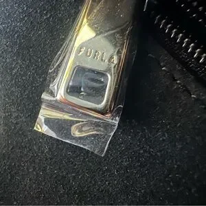 Carry by the adjustable chain strap on the shoulder or across the body. Signature Furla branding is seen throughout hardware. It has plastic wrapping on inside zipper pull. Very beautiful bag and is so soft to the touch. Was handled very delicately.