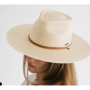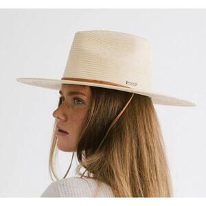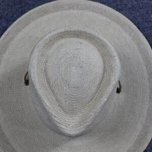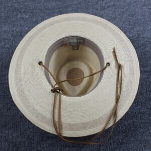 Style/Type: Rancher-style wide brim straw hat with leather chin strap