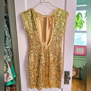 Blaque Market Gold Sequin Open Back Dress Size Large